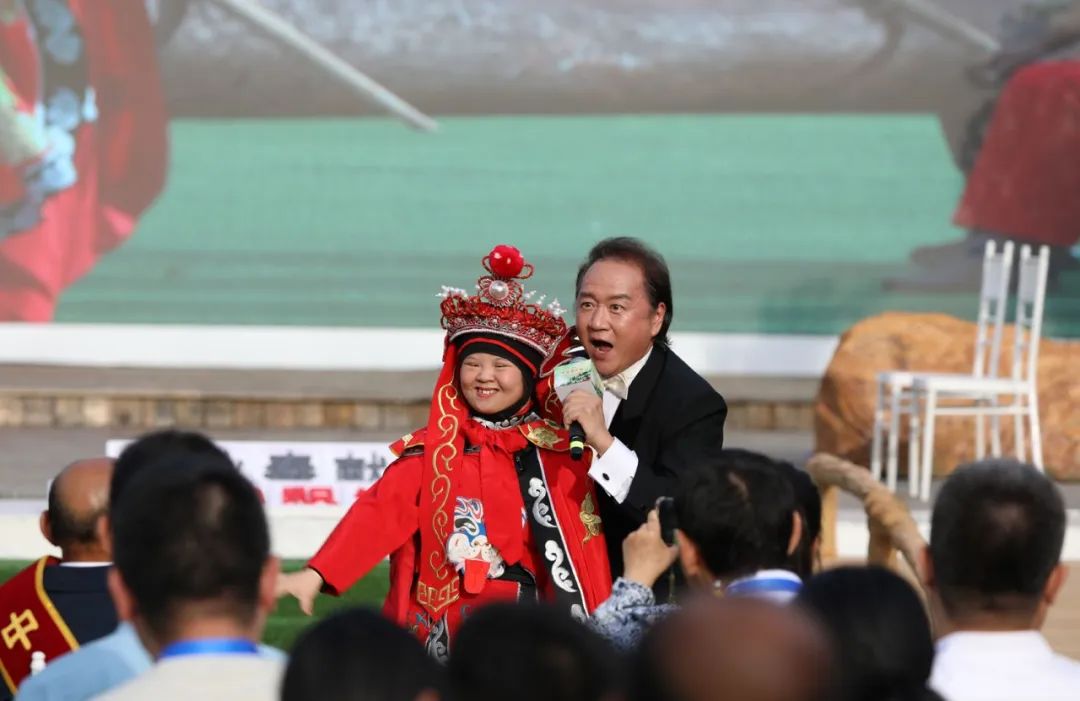 殷秋华(左)与男高音歌唱家陈小涛(右)一起表演歌曲《变脸》并与现场观众互动。王楠 摄