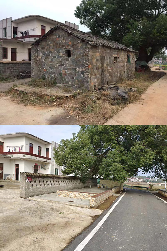 这是水口周村宅基改革前后发生的变化,上图改造前为村民破旧房屋;下图为改造后成为村民活动中心。(资料图片)