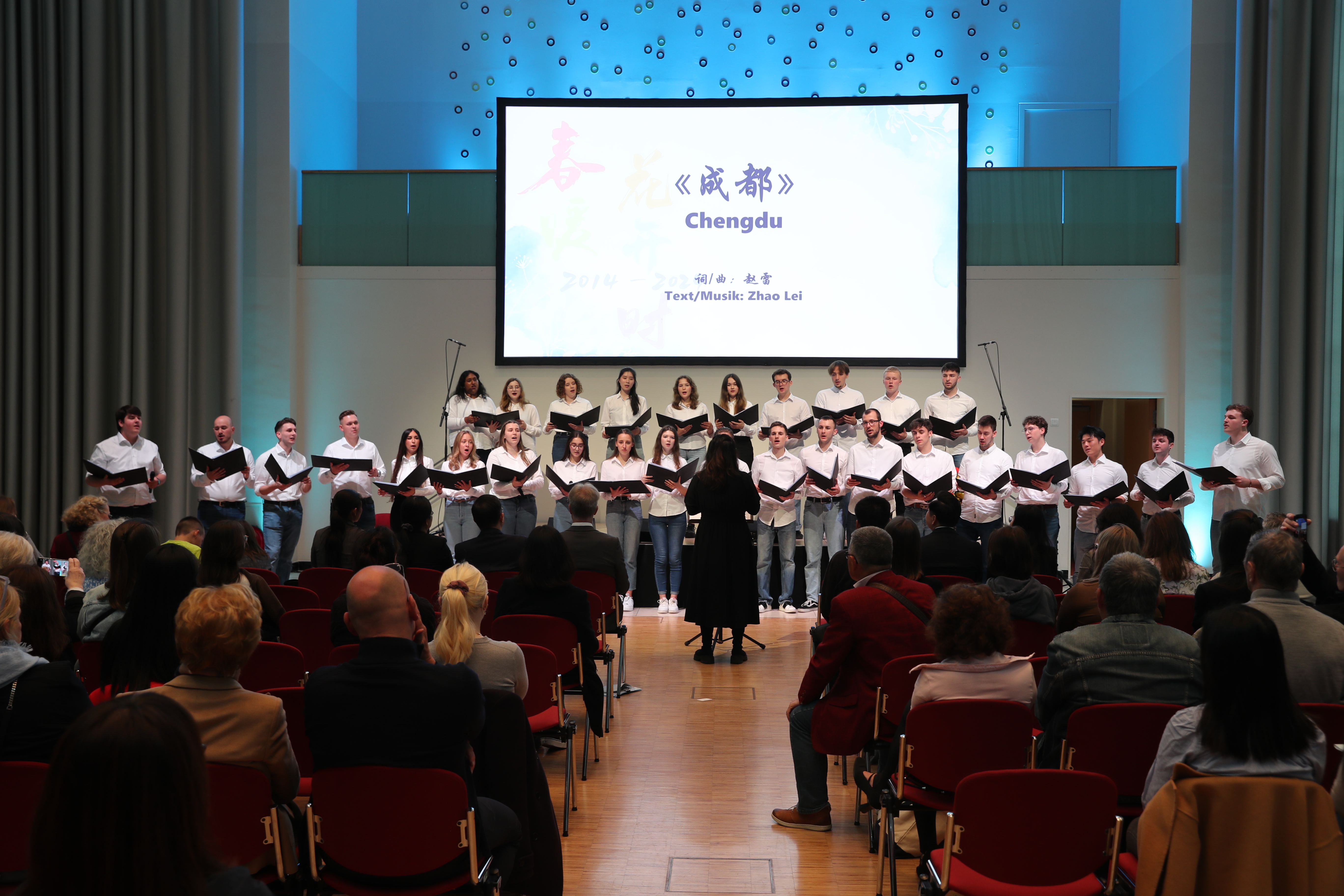 在音乐会上,伯乐中文合唱团共演唱12首歌曲,从经典曲目《同桌的你》《声声慢》,到流行歌曲《童话》《成都》,再到中德歌曲串烧《向云端+云端之上》。合唱团用优美的歌声和真挚的情感赢得观众阵阵掌声。
