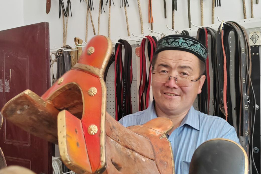 “一副‘好鞍’,不仅要好看,更要结实好用。”哈依塔依是马具制作技艺第四代传人,从12岁开始跟着父亲学习制作马鞍,认真做好每一副马鞍是他从父辈们那里秉承的信念。